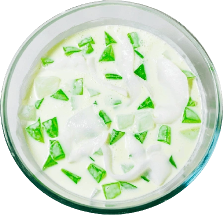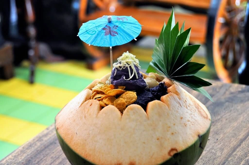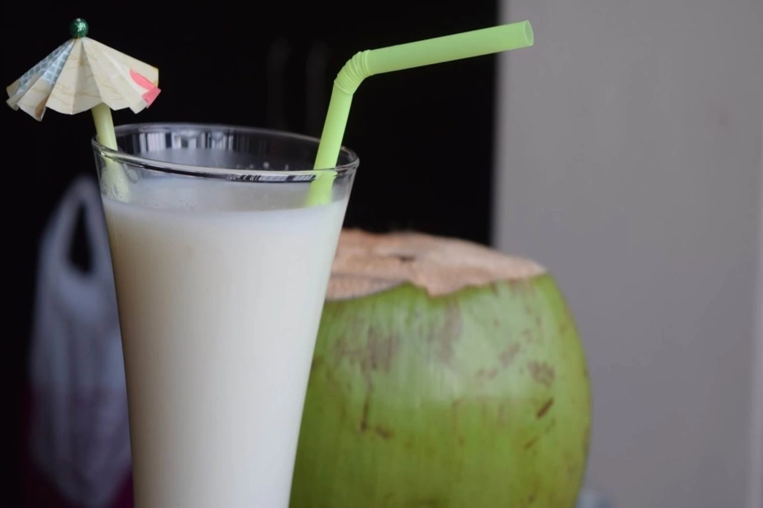 A refreshing bevarage from well mixed blended young coconut, milk, ice and brown sugar