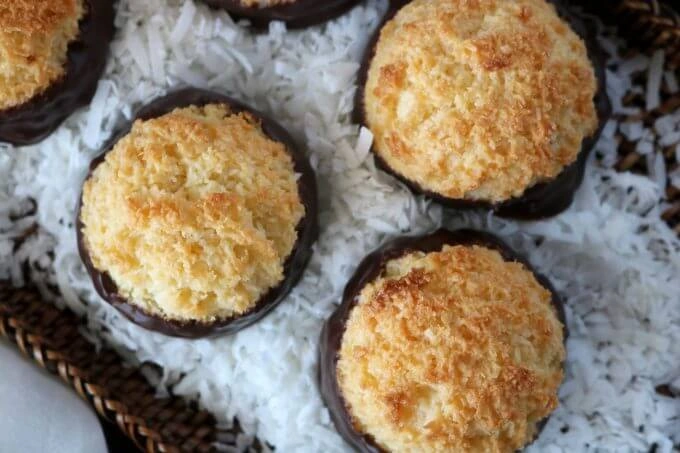 Our signature chewy macaroons are made from desiccated coconut, milk, eggs, and filled with extra coconut meat inside.