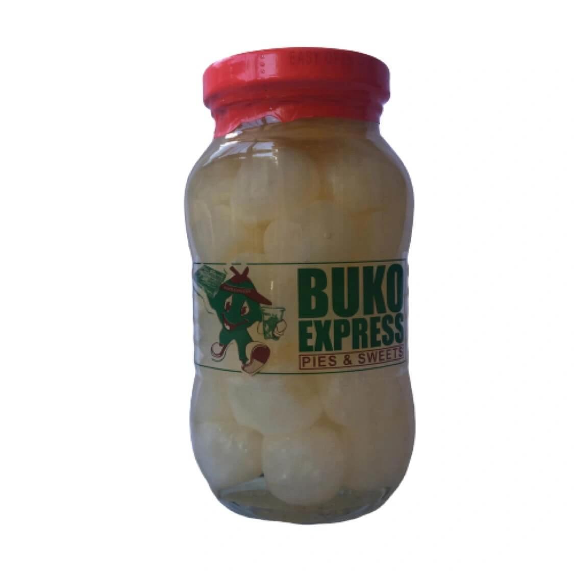 Home made Sweetened Macapuno balls or Strings . Made from coconut strings preserved by adding caramelised sugar.