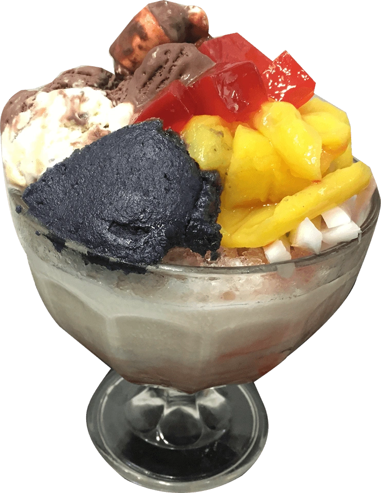 Our version of halo-halo made with all coconut products and creamy milk topped with seasonal ice cream, cheese and wafer stick.