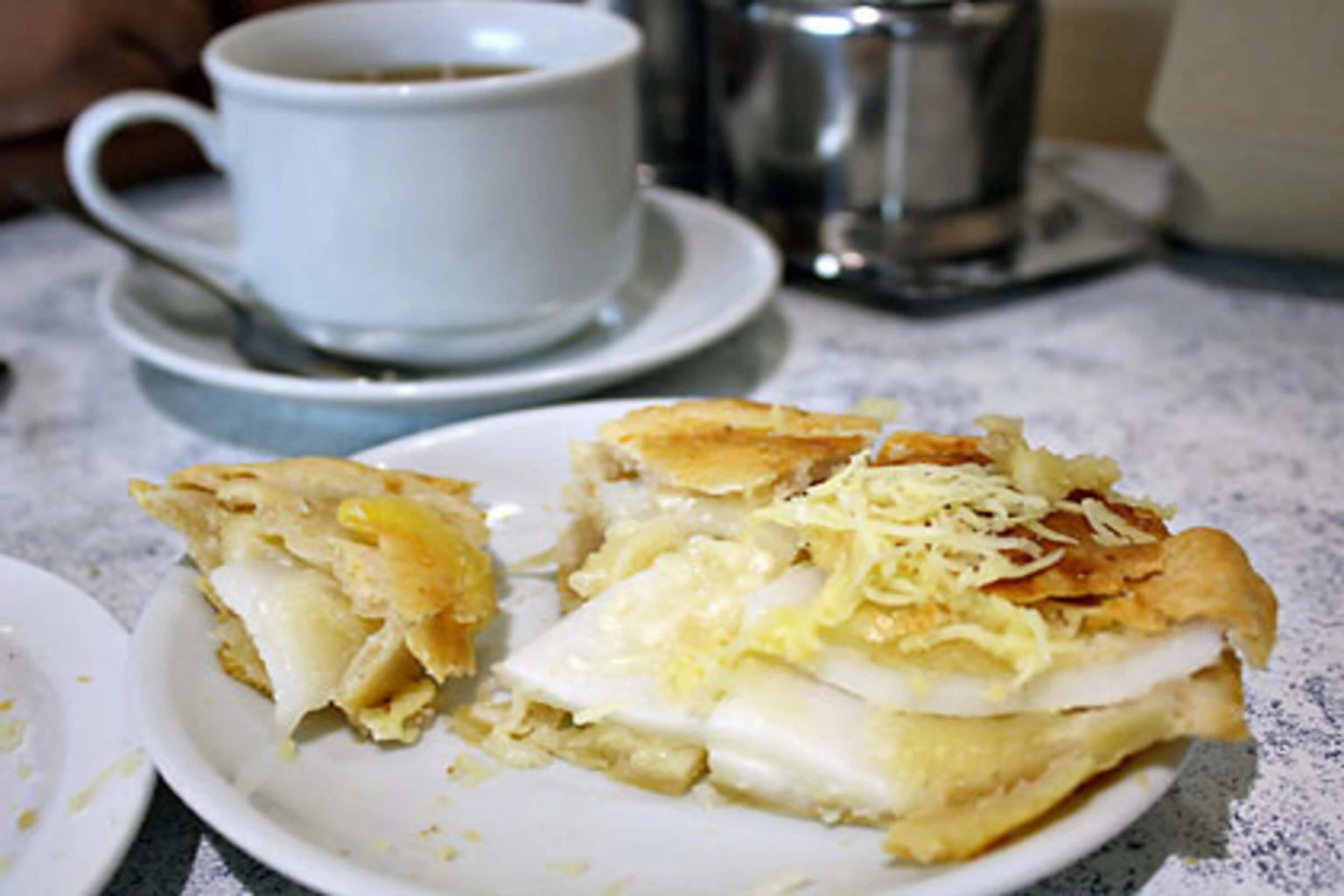 Freshly baked coconut pie made of fresh, tender young coconut meat combined with a creamy filling and enclosed in a flaky pie crust topped with grated cheese.